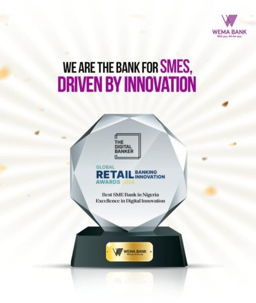 [dropcap]W[/dropcap]ema Bank, Nigeria’s most innovative financial institution and pioneer of Africa’s first fully digital bank, ALAT, has been awarded “Best SME Bank in Nigeria” and “Excellence in Digital Innovation” at the prestigious 2024 Global Retail Banking Innovation Awards.