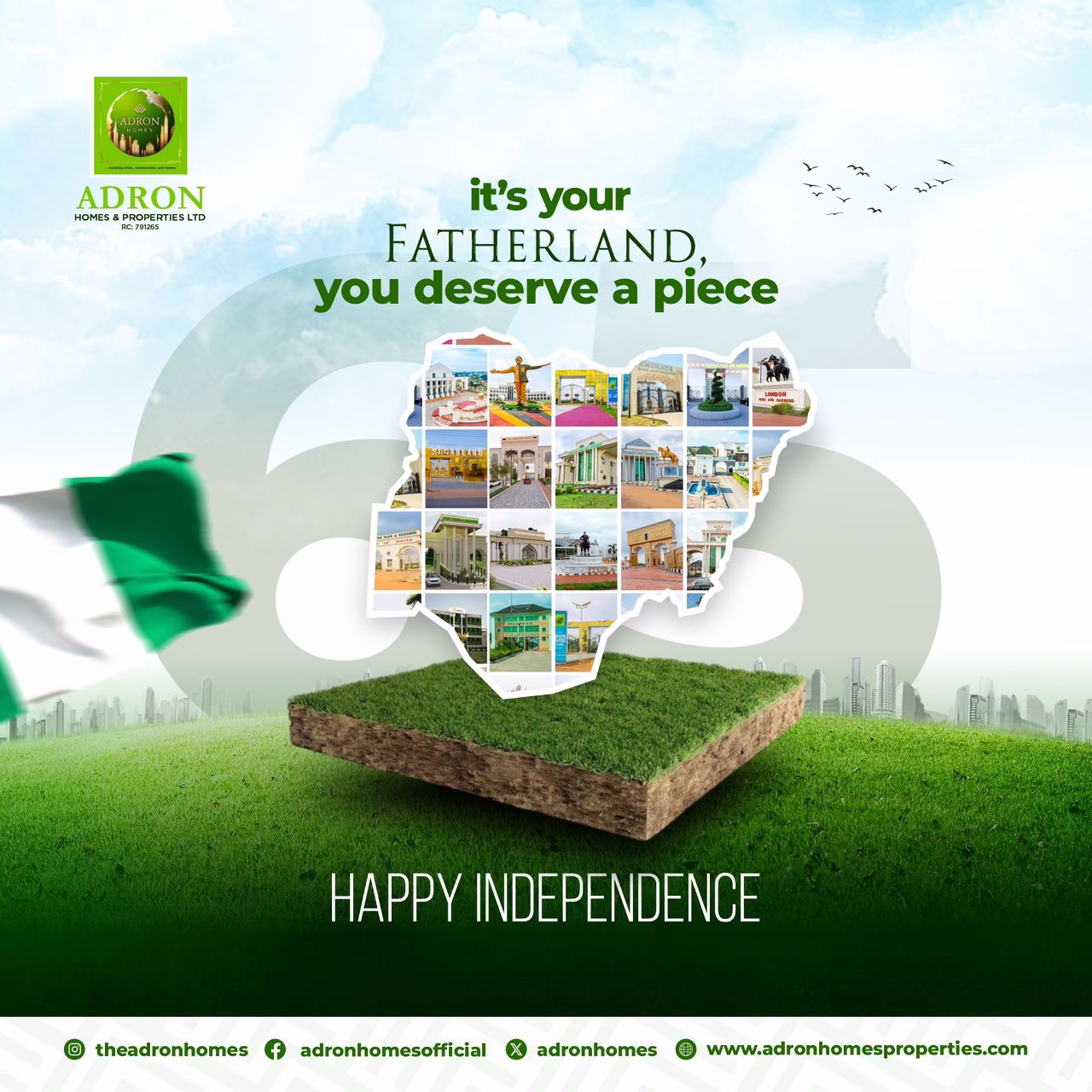 Adron Homes celebrates Nigeria at 65 by saluting the resilience of its people and pledging continued commitment to nation-building through housing and infrastructure development.