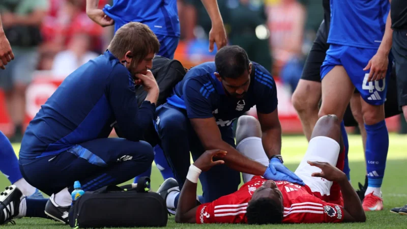 The injury occurred when Awoniyi stretched in an attempt to connect with Anthony Elanga’s cross, colliding heavily with the goalpost at the City Ground.