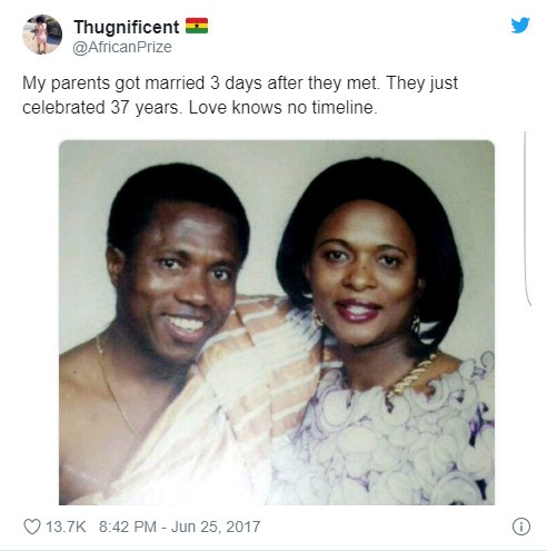 “My parents got married three days after they met. They just celebrated 37 years. Love knows no timeline,” she wrote.
