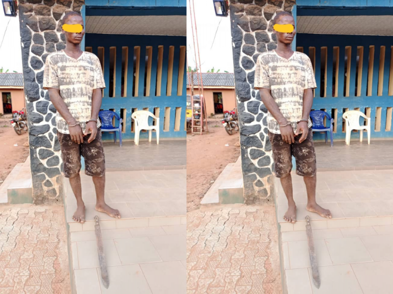 According to the Police, Oliver Chukwudi was declared dead after he was rushed to the hospital for medical attention. The machete used to execute the heinous act was recovered as an exhibit.