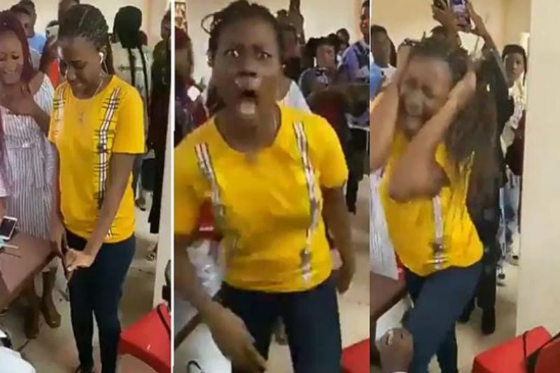 A video making the rounds on social media shows the terrifying moment a lady allegedly ran mad while trying to accept proposal ring from her boyfriend.
