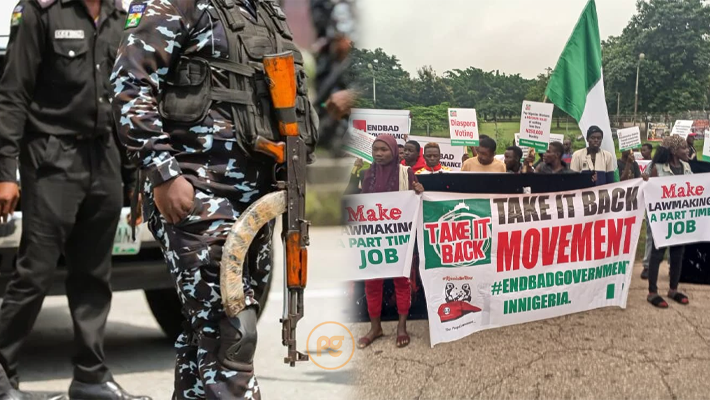 Juwon Sanyaolu, the national coordinator of the Take-It-Back Movement, addressed news reporters at the scene, accusing the security operatives of infringing upon their fundamental right to protest.
