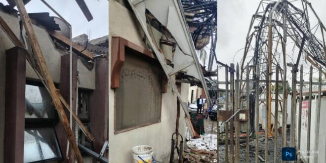 [dropcap]A[/dropcap] landlord residing at Unity Estate, Alagbole-Akute, Ogun State, narrowly escaped death on Tuesday, June 3, 2025, when a telecommunication mast collapsed onto his building during a heavy rainfall. The incident caused significant damage to sections of his house.
