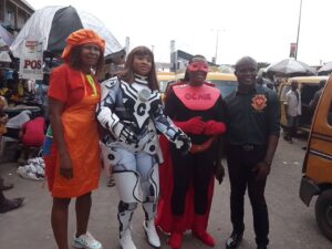 The event started with the volunteers dressed in glamorous costumes to interact with the market women and commuters in the market to announce what they were doing and why they were there.