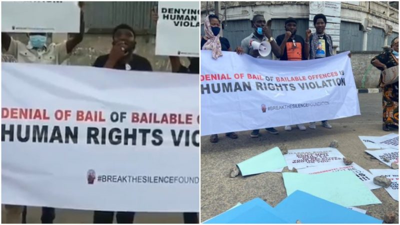 The protesters could be seen with placards with various inscriptions that read, “Denial of bail of bailable offence is human rights violation”, “Say no to set-up, say no to torture”, and “Ilegal detention is a human rights violation, don’t support it” among others.