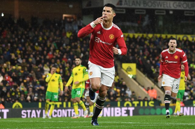 Cristiano Ronaldo scored a hat-trick as Manchester United claimed a 3-2 win over Norwich on Saturday to take advantage of defeats for Arsenal and Tottenham in the race for a place in next season’s Champions League.