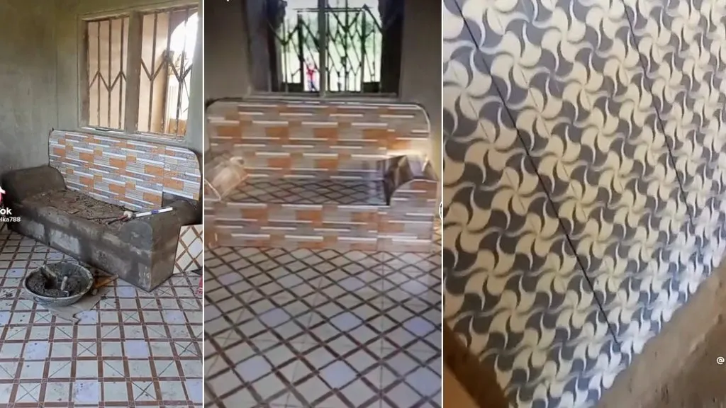A video making the rounds online has got many amused as family uses cement and tiles to make parlour seats and bed.