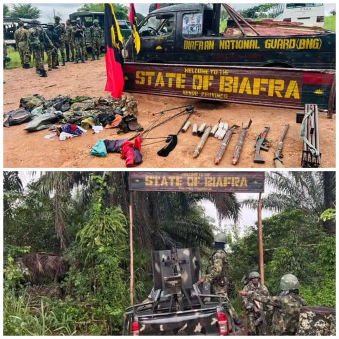 Nwachukwu further said the same troops also busted an IPOB/ESN hideout at Ezioha Mgbowo in Awgu Local Government Area of Enugu State on Monday, acting on credible intelligence.